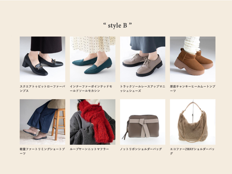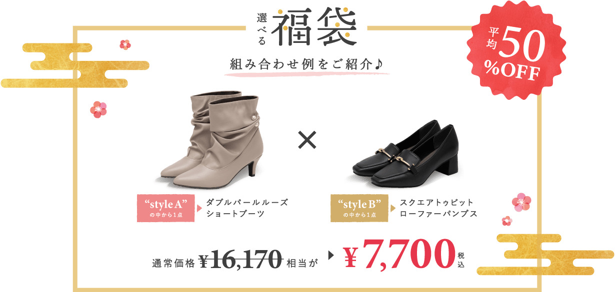 「Style A」「Style B」それぞれから1 点ずつ選べる、特別な福袋企画です。お好みの組み合わせで、オリジナルのスタイルが完成します。